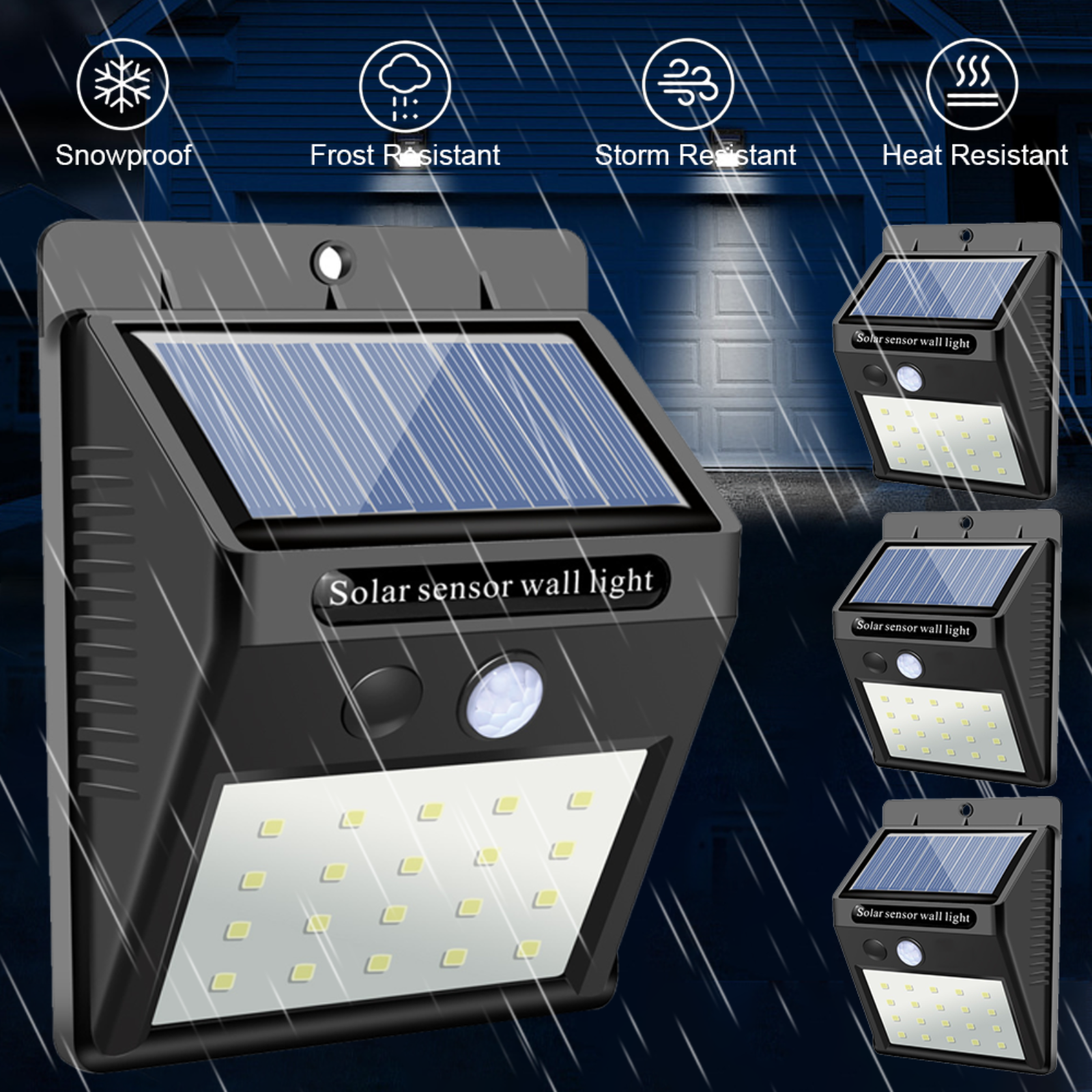 Brighten Your Space with Security: Discover the 4X 20 LED Solar-Powered PIR Motion Sensor Light. It activates in 3-5M, ensuring security. With 20 ultra-bright LEDs and a 120-degree motion angle, it's eco-friendly and waterproof (IP65), perfect for outdoor spaces.