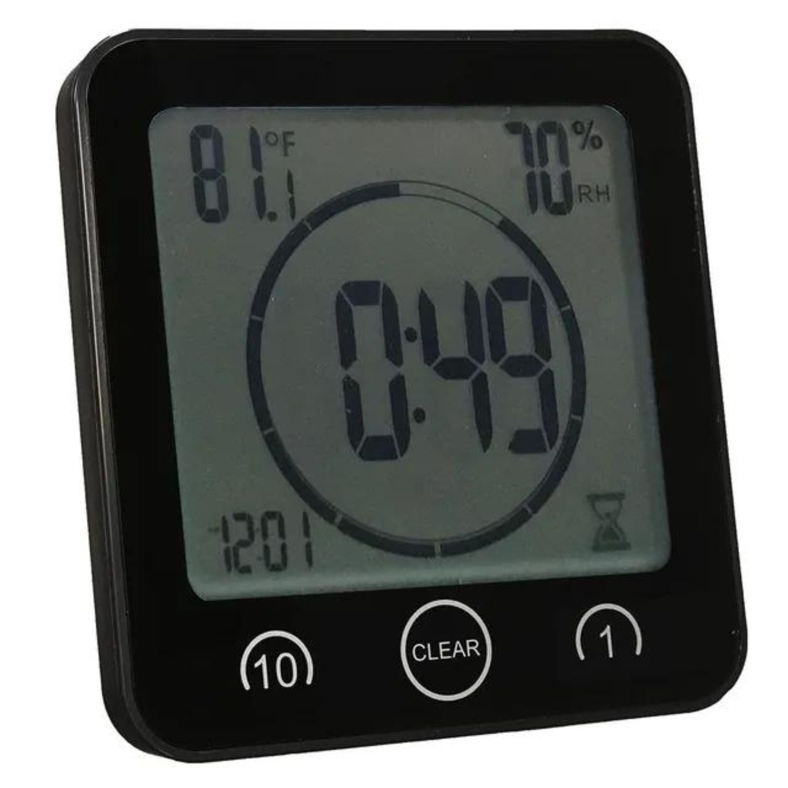 Shower Clock Timer Waterproof Digital Timer Temperature Meter Alarm Black