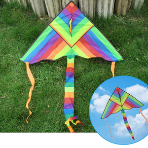 RAINBOW TRIANGLE KITES: Experience the joy of flying with this set of 2 vibrant kites. Designed for easy assembly and durability, these kites are perfect for family outings, picnics, and beach trips.