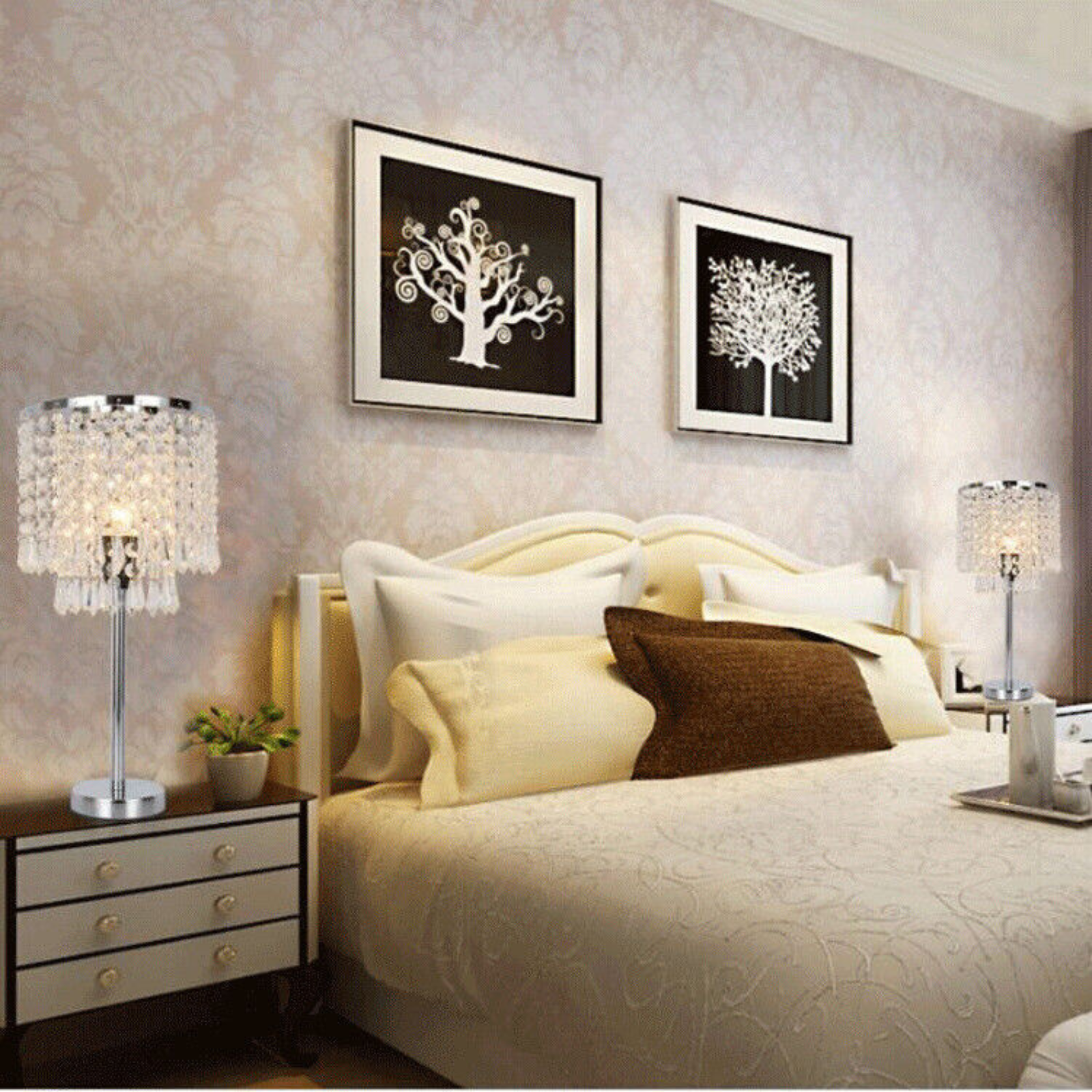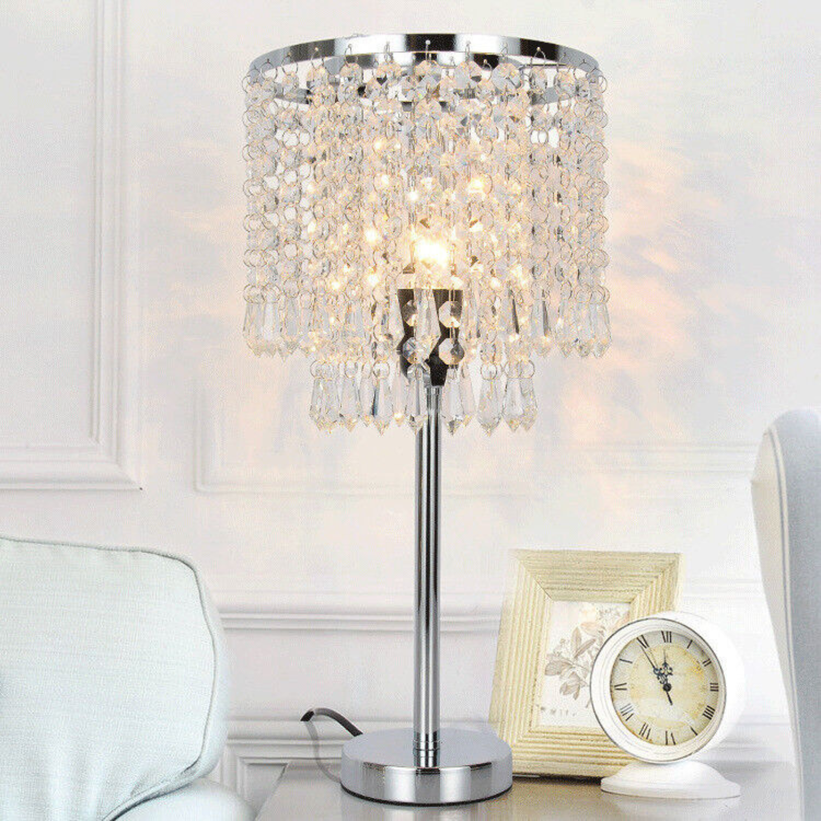 Stainless Steel Base Morden Crystal Bedside Light Room Table Desk Lamp