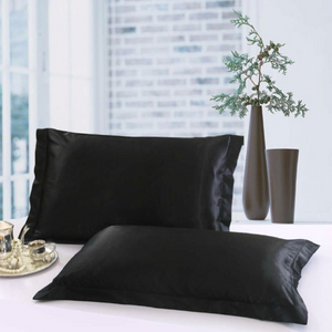 Standard Bedding Smooth Soft Pillowcase Black 2Pcs Silk Satin Pillow Case Cover