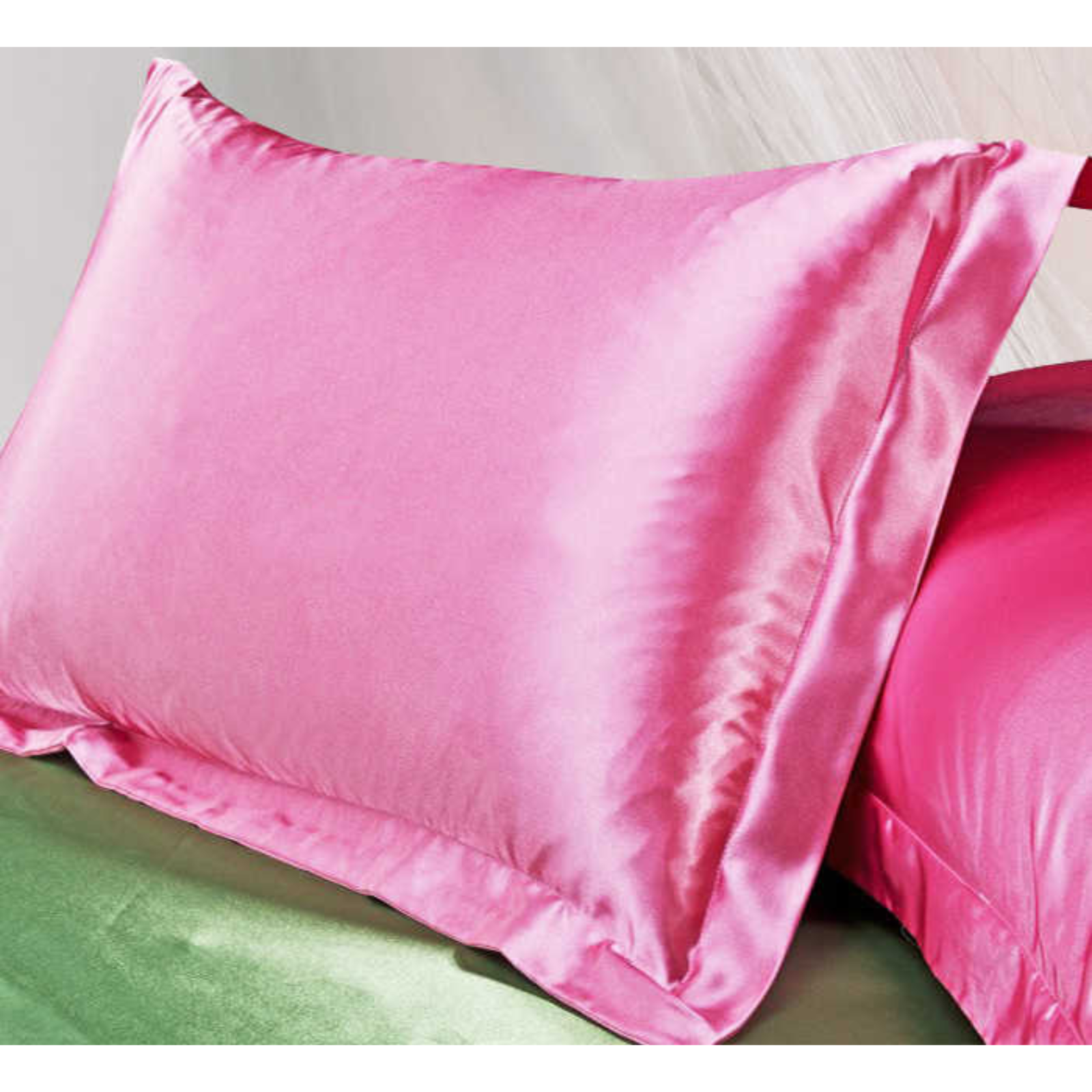 Standard Bedding Smooth Soft Pillowcase Pink 2Pcs Silk Satin Pillow Case Cover