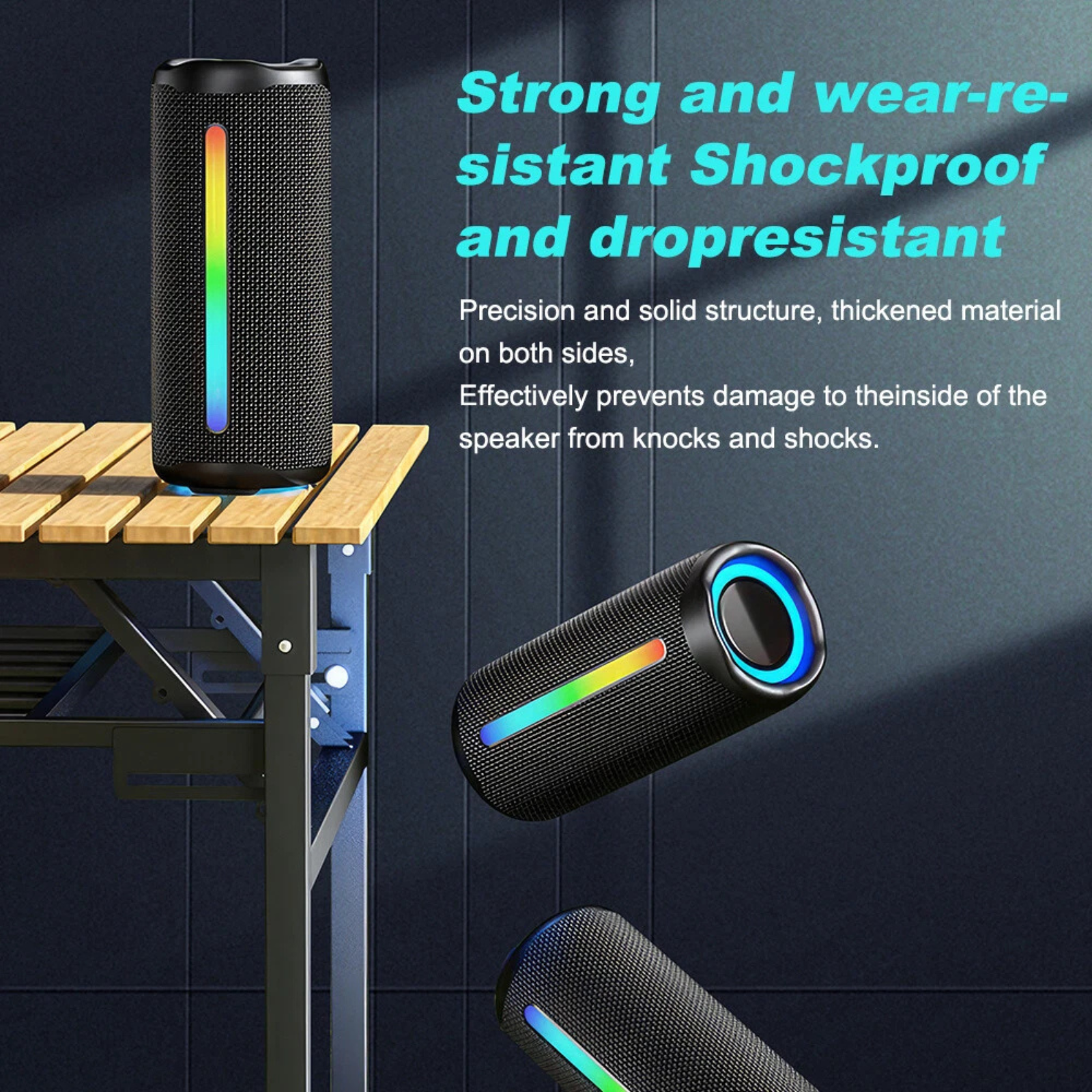 Vibrant Sound & Lighting: Elevate your music experience with this portable Bluetooth speaker, featuring RGB lighting and stereo bass for dynamic audio and visual enjoyment.