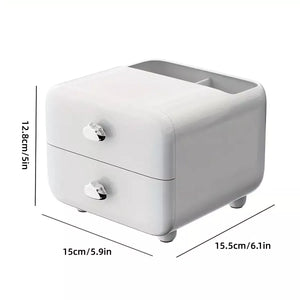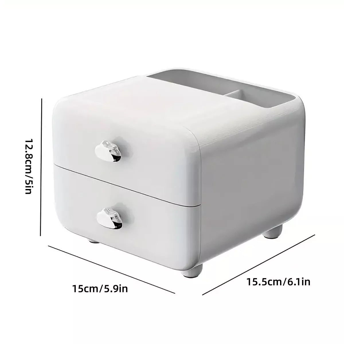 COMPACT & ELEGANT: Organise your workspace with this Multifunctional Desktop Storage Box featuring two drawers and a top tray. Perfect for office, study, or home use, it brings tidy efficiency in a stylish, space-saving design.