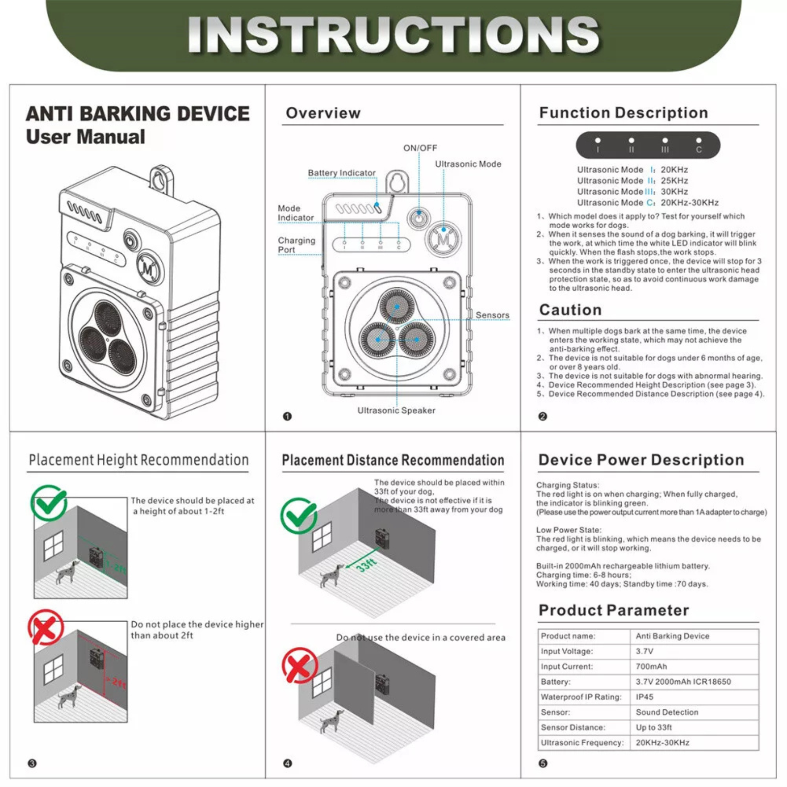 CONTROL BARKING EFFECTIVELY: This Ultrasonic Stop Bark Repeller uses high-frequency sound waves to deter excessive barking from your dog. It automatically detects barking up to 32 feet and emits harmless sound waves that only dogs can hear, helping to maintain a peaceful environment.