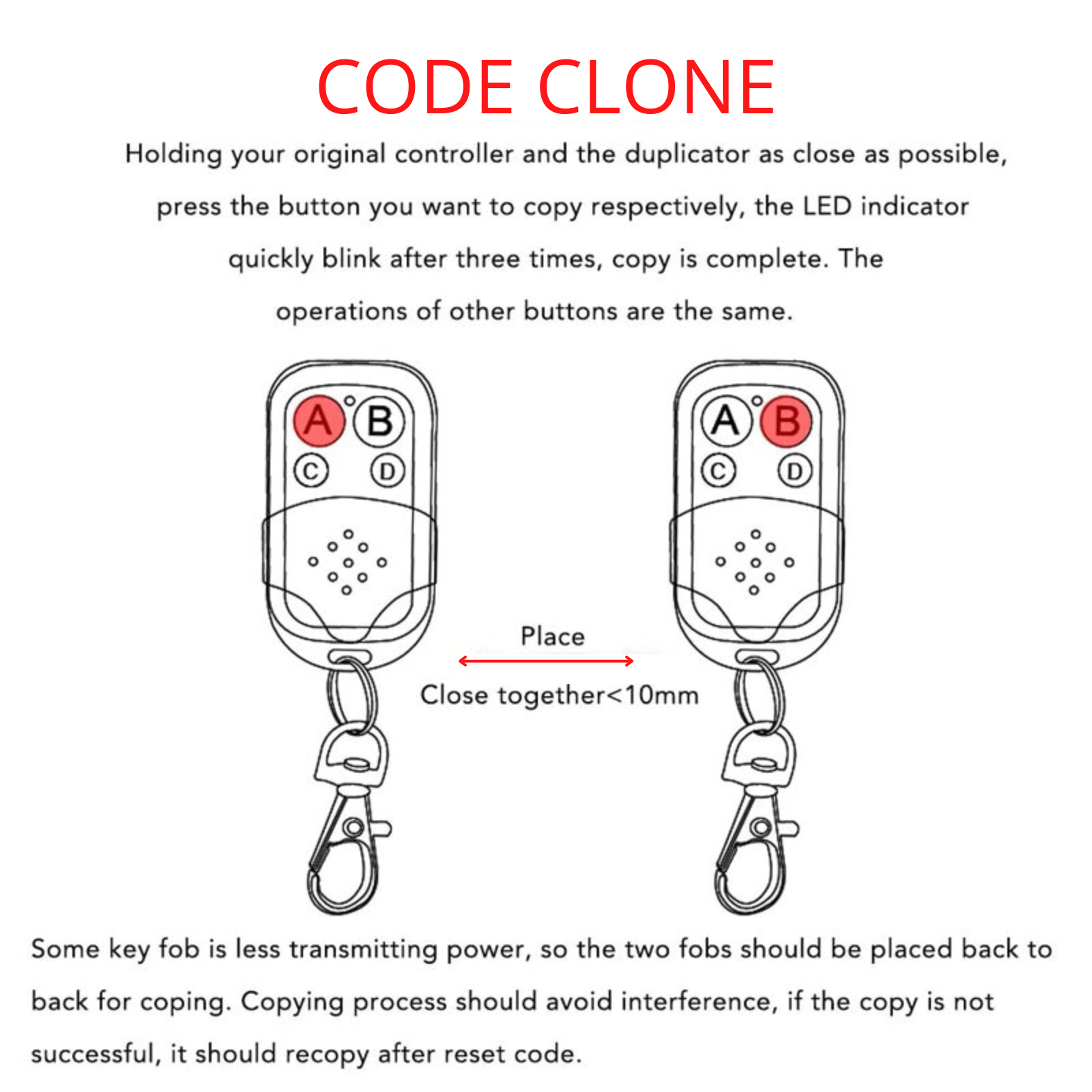 Featuring 4 Button Remote to enable up to 4 remotes to be cloned