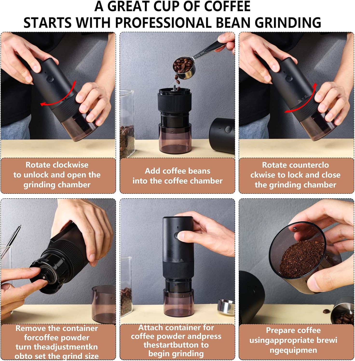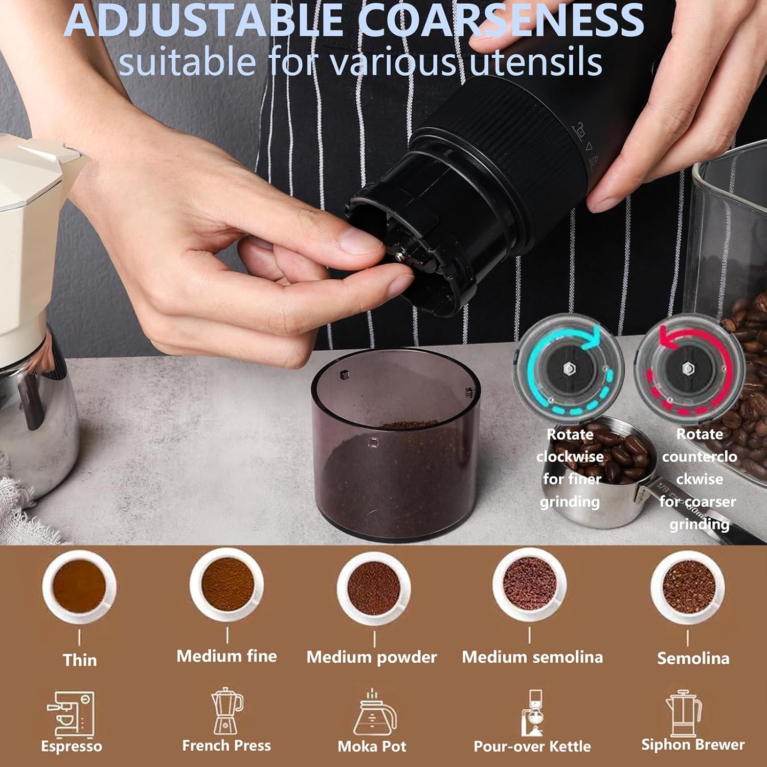 COMPACT & EFFICIENT GRINDING: This Electric Coffee Grinder offers fast and uniform grinding for coffee beans, nuts, spices, and herbs. Its USB-powered design ensures convenience and portability, making it ideal for home or travel use.
