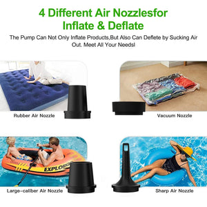 VERSATILE NOZZLE OPTIONS: Includes 4 detachable nozzles to fit various inflatables, from air beds to pool floats.