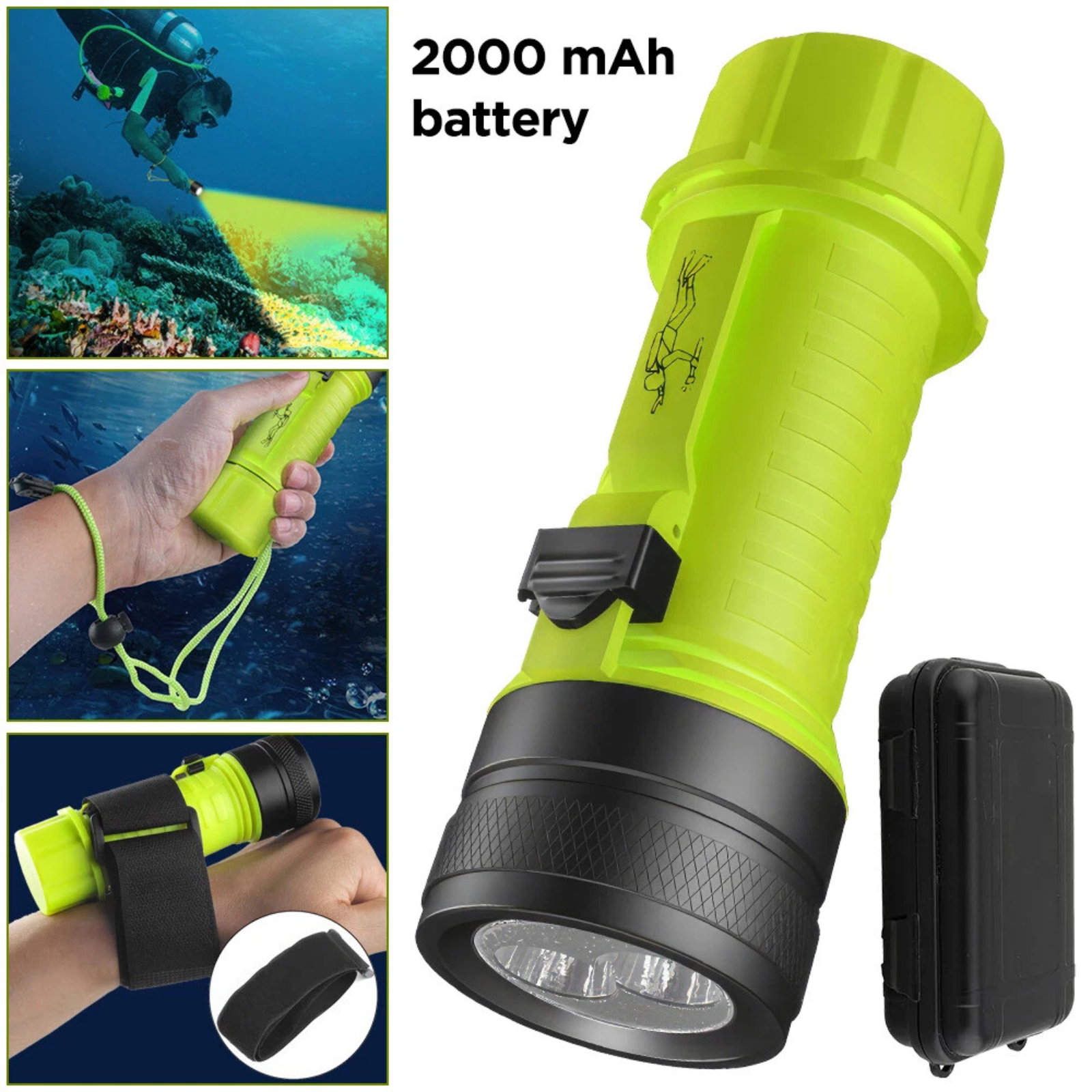 Waterproof Professional Scuba Light & Rope Charger High Power Diving Flashlight