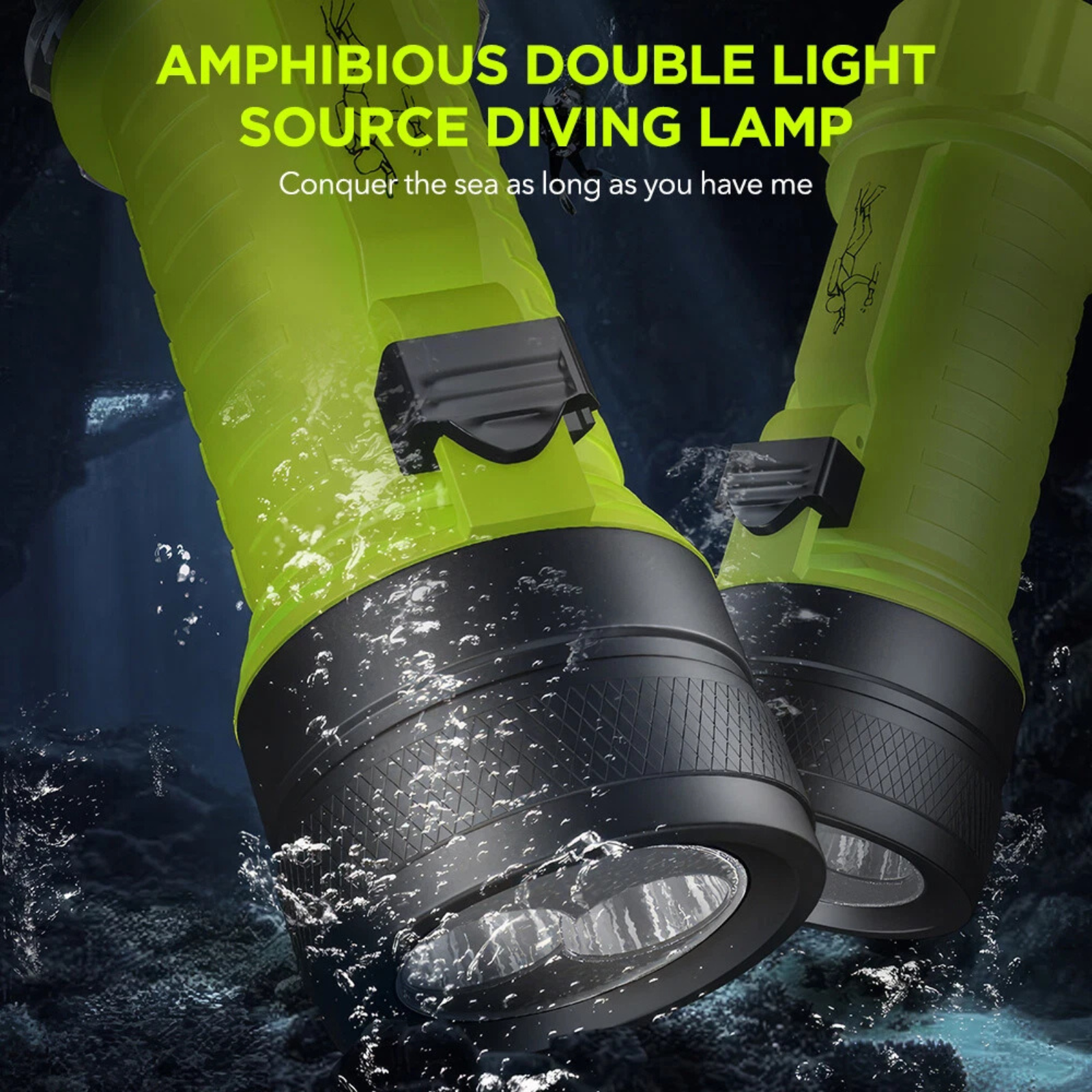 DUAL-BEAM & DEEP DIVING: This IPX8 waterproof diving flashlight features dual P50 lamp beads and two lighting modes for superior brightness and visibility underwater. Compact, portable, and perfect for a variety of outdoor adventures.