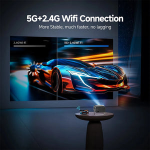 ULTRA-HD & SMART CONNECTIVITY: Experience immersive viewing with this 5G 4K Smart Projector, featuring WiFi and Bluetooth capabilities for seamless streaming and connectivity in your home or office setup.