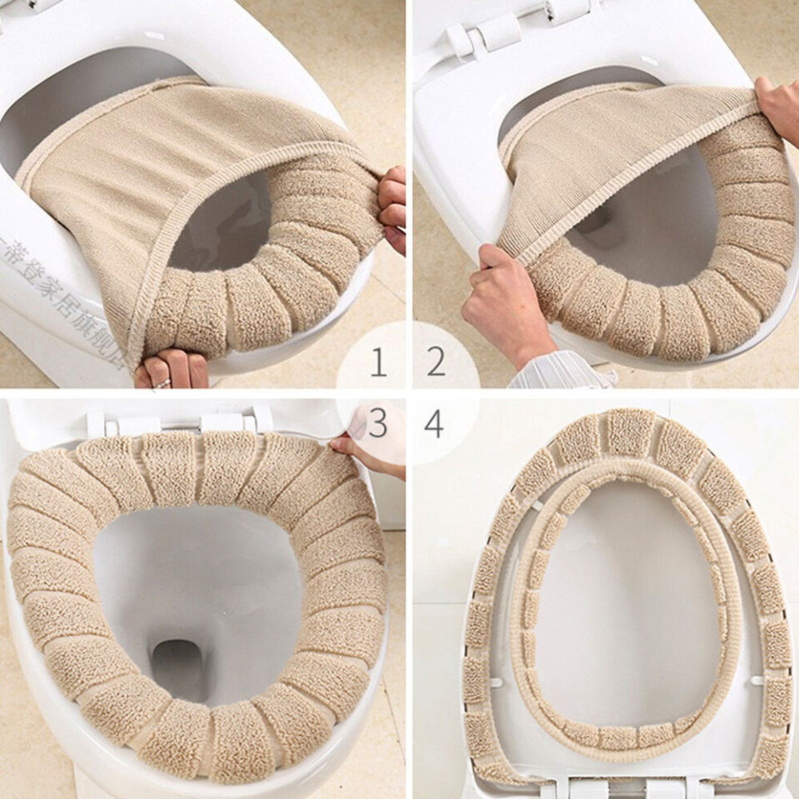 Warmer Washable Mat Cover Pad Biege Soft Bathroom Closestool Toilet Seat
