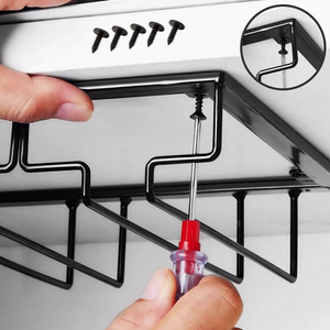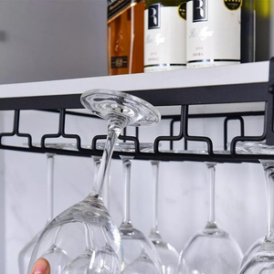 Enhance your home bar with this iron wine glass rack. Built to last, it resists bending, rusting, and oxidation. The 9cm wide opening fits various glass types, including Champagne and cocktail glasses, keeping your space neat and stylish.