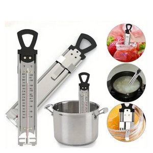 STAINLESS STEEL COOKING THERMOMETER: Ensure precise temperature control for frying, baking, candy making and more. With a range of 100°F–400°F (40°C–200°C) and a built-in food clip, this durable tool helps achieve perfect cooking results every time.