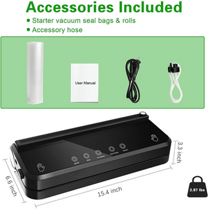 Versatile Sealer: Accessory port, hose for canisters, cans, wine stoppers, jars.