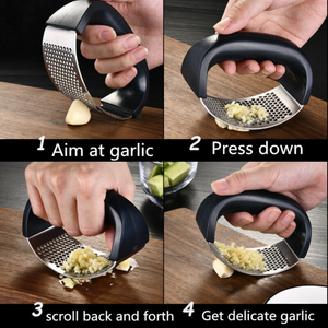 Effortlessly crush garlic with the Stainless Steel Garlic Press. Its ergonomic design allows a comfortable rocking motion, making cooking a breeze. The plastic handle ensures ease, and it's an ideal gift for chefs or garlic enthusiasts. Elevate your culinary experience.