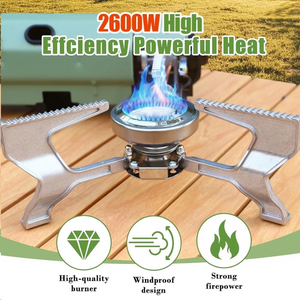 The Portable Folding Gas Stove delivers powerful 2600W heating performance for fast and efficient cooking outdoors. Designed for versatility, it supports a wide range of cookware including baking trays, frying pans, cooking pots, and kettles.