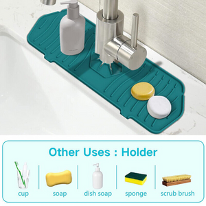 Crafted from premium silicone, this durable and reusable accessory boasts a wrap-around design, ideal for shielding kitchen and bathroom surfaces from water and stains. Its self-draining feature ensures a dry and tidy environment, while easy installation makes it suitable for various faucets