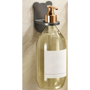 BOTTLE HOLDER DISPENSER STAND: A compact plastic bottle holder designed to secure shampoo and liquid bottles, offering hands free convenience for kitchens, bathrooms and commercial spaces.