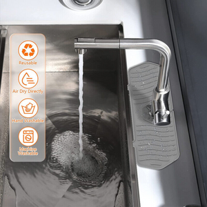 Crafted from premium silicone, this durable and reusable accessory boasts a wrap-around design, ideal for shielding kitchen and bathroom surfaces from water and stains. Its self-draining feature ensures a dry and tidy environment, while easy installation makes it suitable for various faucets