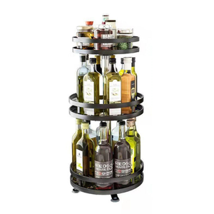 360° ROTATING SPICE RACK ORGANIZER: Keep your kitchen neat and stylish with this multi-tier rotating spice rack. Designed for convenience and versatility, it offers smooth 360° rotation, adjustable height, and durable carbon steel construction.