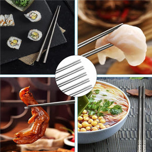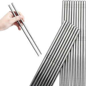 Stainless Steel Chopsticks 22.5cm Reusable Cutlery Asian Chinese Dinner 10 Pairs
