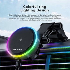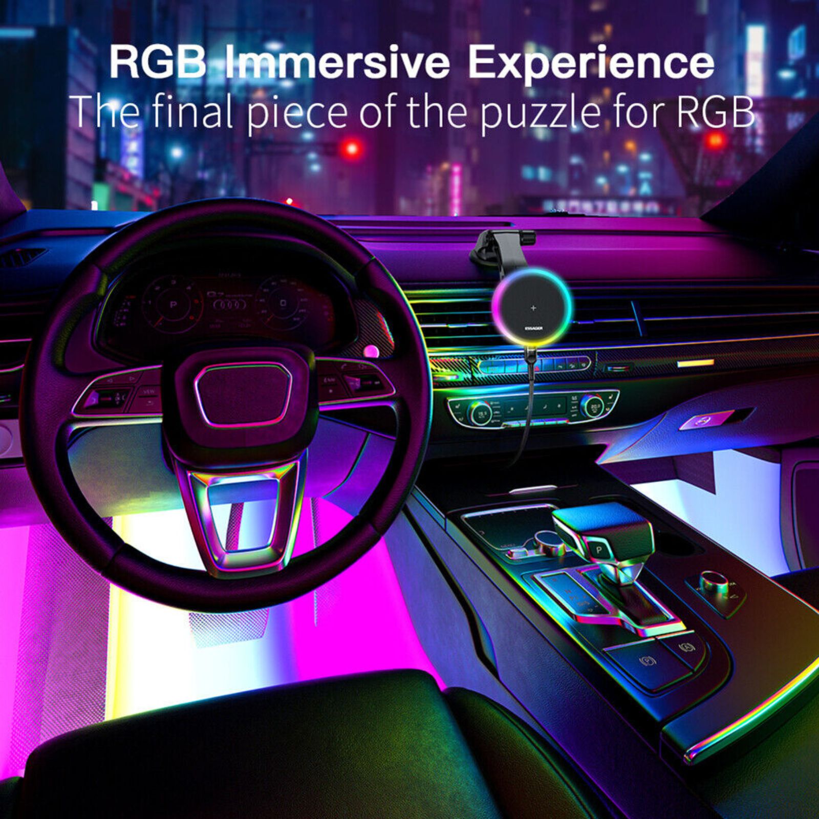 15W RGB Magnetic Charger Stand Suction Cup Car Mount Phone Holder