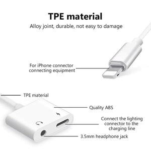 2 in 1 Adapter to AUX Headphone Charger iPhone Jack to 3.5mm Splitter