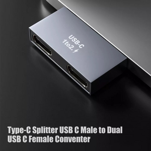 2x Type-C Splitter USB-C Male to Dual USB-C Female Adapter - Grey