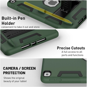 Slim Fit Tablet Military Green Case for New iPad 9th Generation - Ultimate protection with three-layer military-grade defense, adjustable stand for various viewing angles, and added grip texture. Sleek, lightweight, and ideal for minimalists. Thoughtful gift for special occasions.