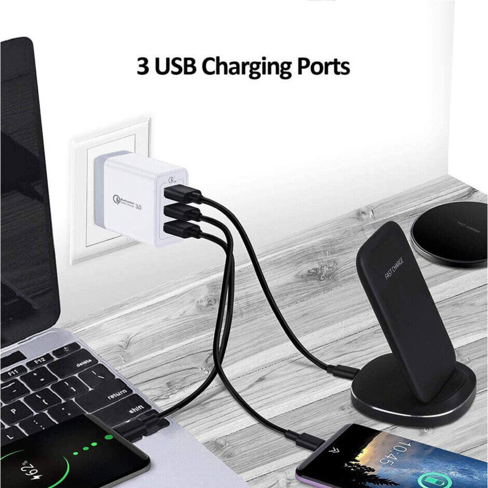USB Wall Charger Adapter 30W QC 3.0 Fast Charging 3 Port iPhone Samsung