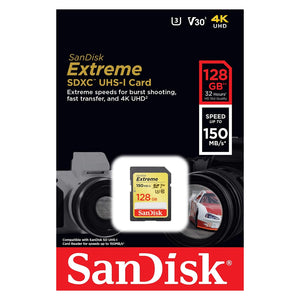SanDisk Extreme 128GB SDXC 150MB/S Class 10 SD Camera Memory TF Card DSLR 4K UHD