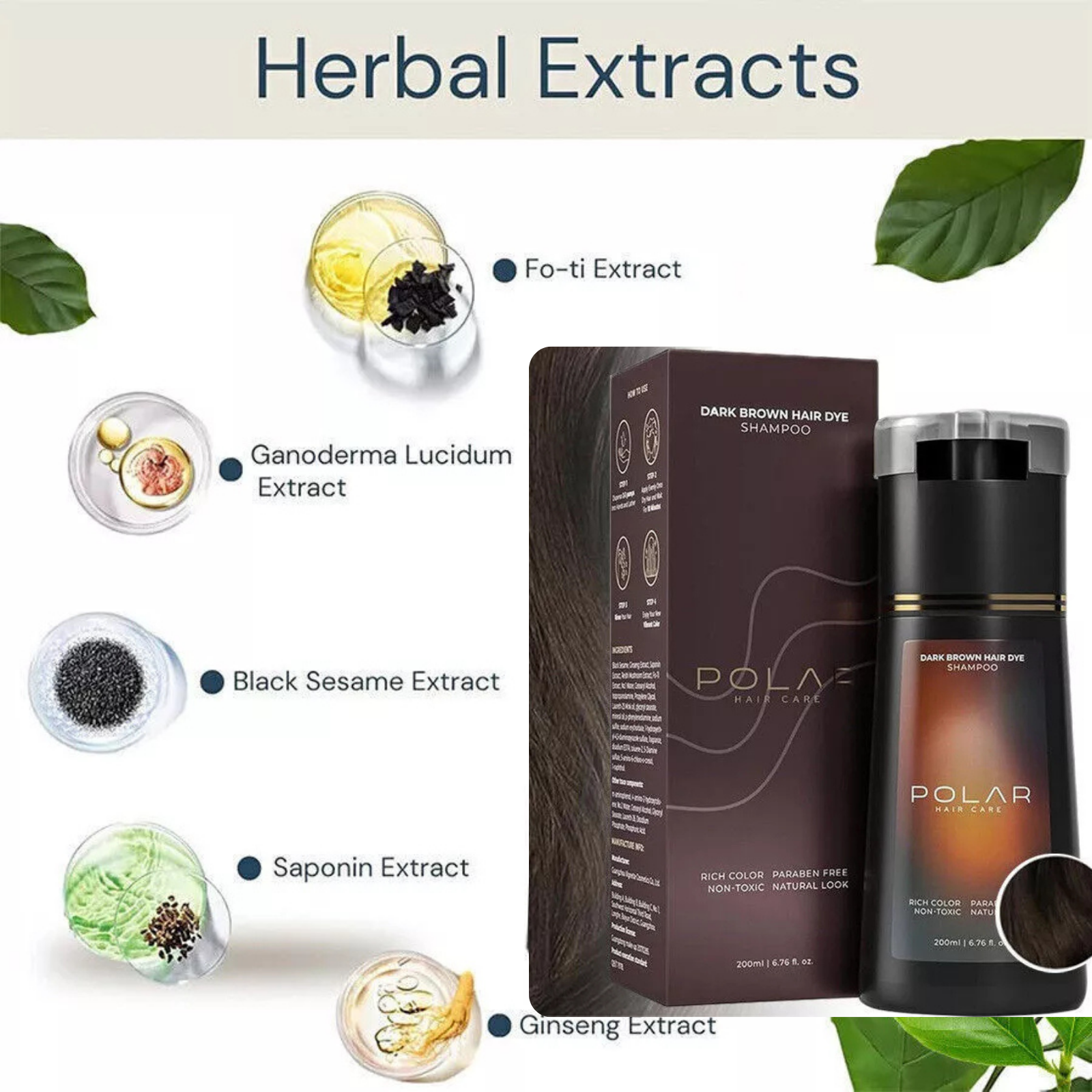 INSTANT HAIR COLOURING SOLUTION: The 200ml Polar Hair Instant Dye Shampoo offers a quick and convenient way to achieve a natural-looking hair colour, enhancing your appearance effortlessly.