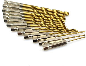 13PCS HSS Titanium Drill Bits Hex Shank Set Quick Change Soft Metal Wood Timber