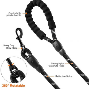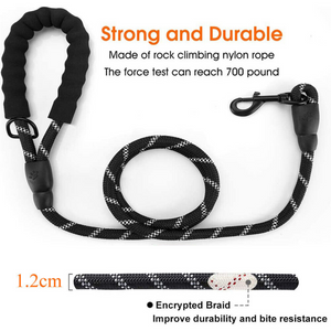 Elevate your dog's experience with Rope Dog Leash - no more rope burns, just ultimate comfort, durability, and safety for walks day or night! Crafted with 1/2'' mountain climbing rope, featuring a foam-padded handle and reflective thread, it's perfect for any adventure.