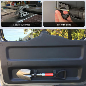 This durable shovel holder mount with a quick-release rubber clamp fits tools with 1-1/3 to 1-3/7 diameter. Easily install on your car or RV rack for secure storage. Ideal for outdoor enthusiasts and DIYers, ensuring a reliable hold for tools during transport or storage.
