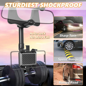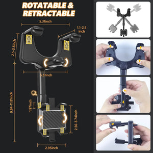 VERSATILE & CONVENIENT: This 360° Rotatable and Retractable Car Phone Holder offers a multifunctional design, allowing you to securely mount your phone on the rearview mirror for easy access and hands-free operation while driving.