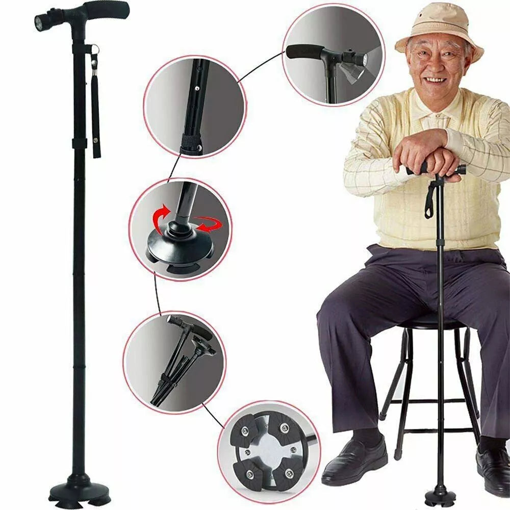 LIGHTWEIGHT & ADJUSTABLE: The LED Walking Stick is the perfect companion for mobility support during hiking, travel, or daily use. Its aluminium frame ensures durability, while the built-in LED light provides added visibility in low-light conditions. The adjustable height makes it suitable for various users.