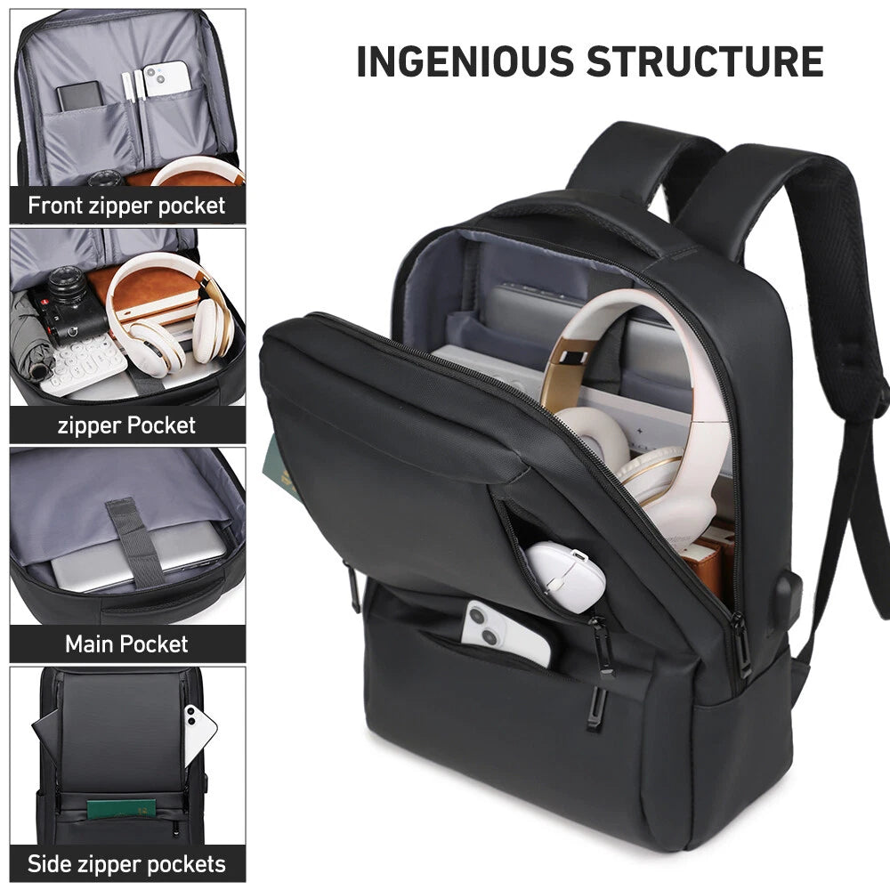 Anti Theft Business Travel Bag 15.6" Laptop USB Port Backpack Unisex Black