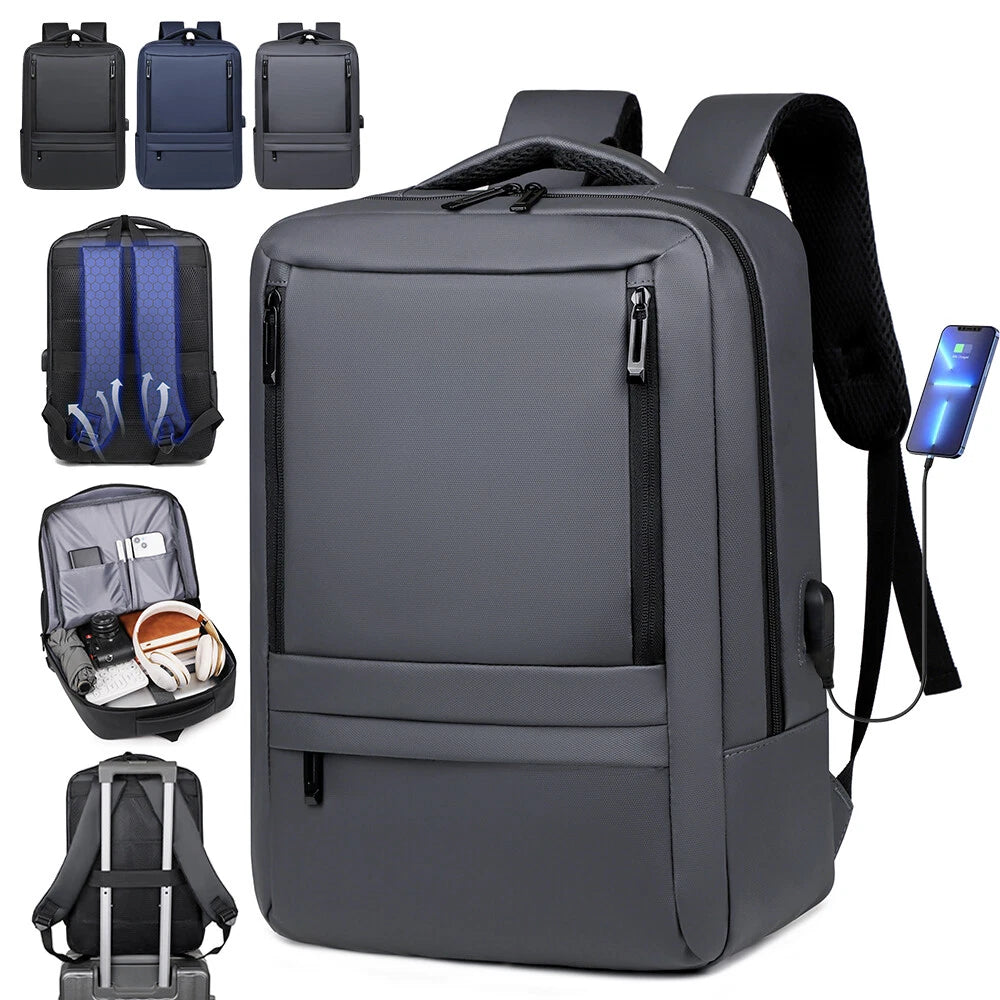 Anti Theft Business Travel Bag 15.6" Laptop USB Port Backpack Unisex Grey