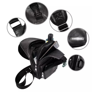 Experience effortless convenience with this PU Leather chest bag. Equipped with a USB charging port and earphone hole, easily charge devices and enjoy music without opening the bag. Its adjustable strap allows for comfortable wear as a chest pack or shoulder bag, making it ideal for travel and daily use.