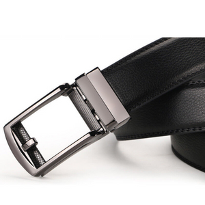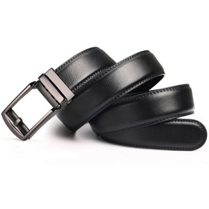 Automatic Steel Buckle Black Leather Belt Detachable Waistband Cuttable Strap