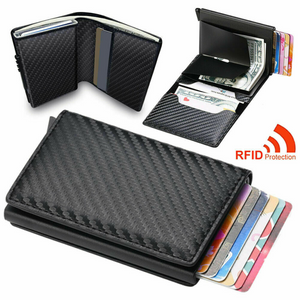 Black Carbon Fiber Wallet Credit Card ID Holder Men's RFID Blocking Slim Purse
