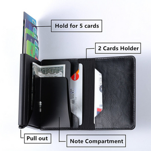 Elevate your security with Pop-up Credit Card Holder. Crafted from durable aluminum, it accommodates 5-6 cards, including credit cards and IDs. Enjoy RFID protection, preventing hackers from compromising your privacy. Slim and resilient, it fits snugly in your back pocket at 10cmx6.5cmx1.5cm.