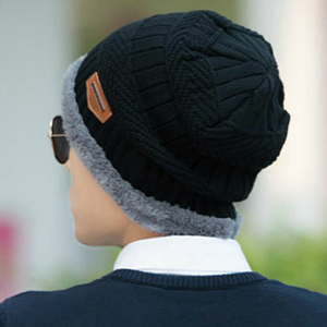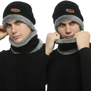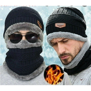 Black Ski Cap Neck Warm Beanie Fleece Winter Knitted Hat Men Fur Women