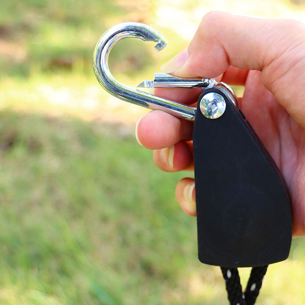 VERSATILE & DURABLE: The Portable Adjustable Fix Camping Rope is perfect for all your outdoor adventures. Whether you're setting up a tent or adjusting your canopy, this pulley system ensures quick, secure tensioning of ropes with its fast-release mechanism and high-strength materials.