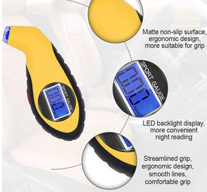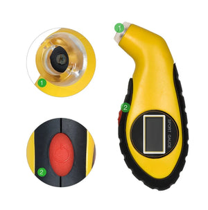 1x Digital Tyre Pressure Gauge - Yellow & Black