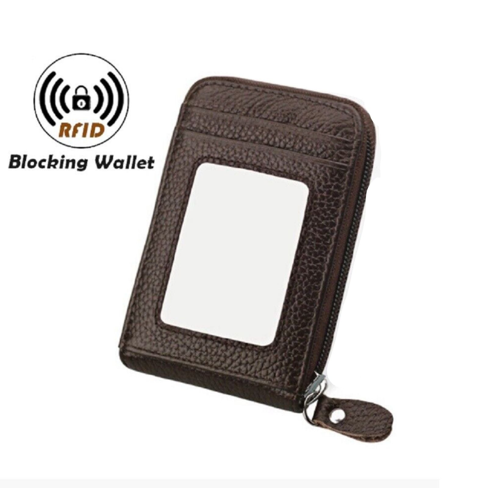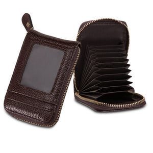 Coffee Leather Coin Purse Anti-theft Credit Card Holder RFID Blocking Wallet