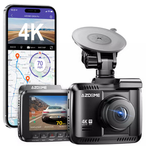 Drive safely with the GPS-enabled AZDOME dual lens dash cam in your car! Experience crystal clear 4K recording, superior night vision, and smart accident monitoring for enhanced safety and security on the road.