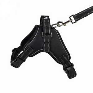 Introducing the Easy-to-Use and Adjustable Dog Harness: Experience hassle-free walks with your furry friend. The harness comes with fast-release buckles, full adjustability, and two leash attachment points for a comfortable and safe outing. Keep your dog secure with this lightweight and durable harness.